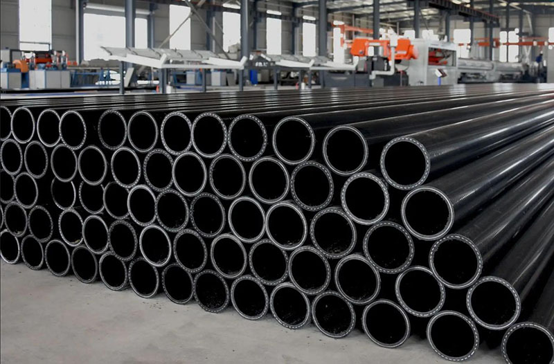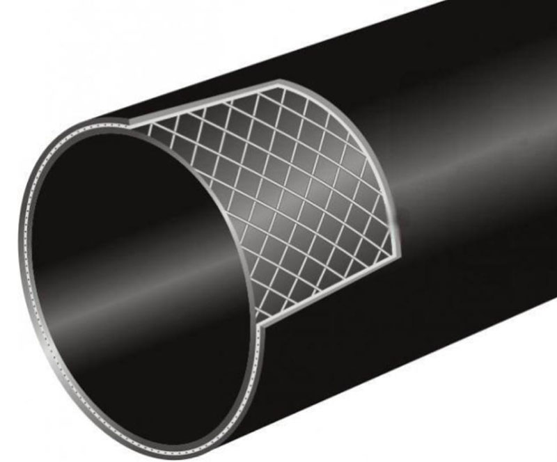 HDPE钢丝骨架多用途复合管,是以高强度钢丝左右螺旋缠绕成型的网状骨架为增强体,以高密度聚乙烯(HDPE)为基体,并用高性能的HDPE改性粘结树脂将钢丝骨架与内、外层高密度聚乙烯紧密地连接在一起的一种新型管材。因为高强度钢丝增强体被包覆在连续热塑性塑料之中,因此钢丝网骨架聚乙烯复合管克服了钢管和塑料管各自的缺点,而又保持了钢管和塑料管各自的优点。广泛用于石油化工、市政工程、高速公路电缆输导、电力工程,长距离埋地用供水、排水、燃气、消防等多种管道系统。